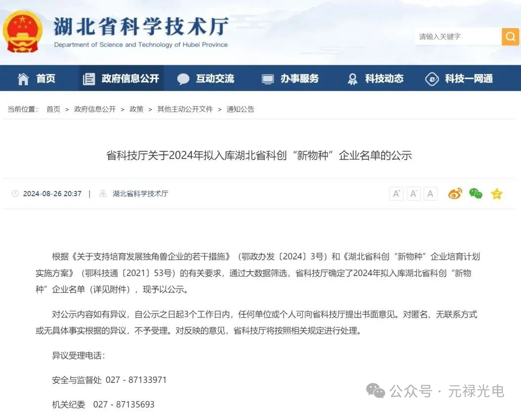 喜報 | 熱烈慶祝元祿光電榮獲湖北省科創“新物種”企業稱號