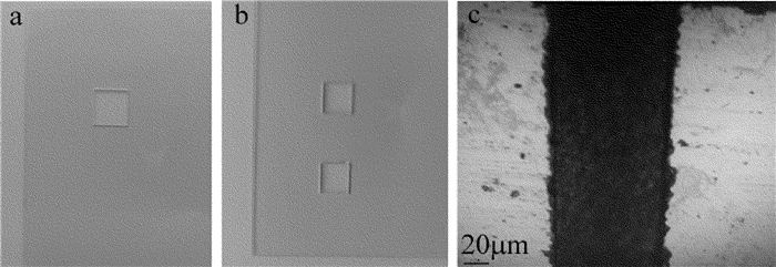 (2) 在噴口口徑為0.4mm、水束壓力為20MPa、激光功率為48W、切割速率為20mm/s時進行玻璃的微水導激光切割。厚度為0.5mm1.0mm的玻璃試樣的切割表面均比較光滑、基體內無微裂紋存在,切縫寬度約為100μm,但1.0mm厚的玻璃試樣切割邊緣有毛刺及崩邊現象出現。